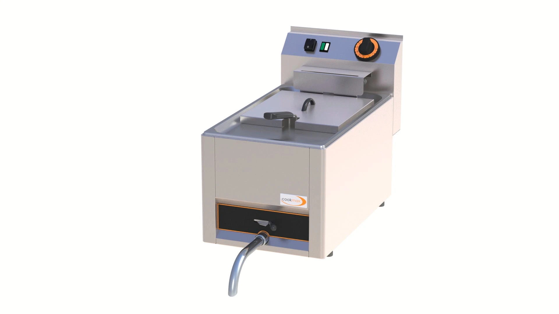 > Edelstahlkorpus > Temperaturbereich: 50°C bis 190°C > Becken, gerundet mit Kaltzone > mit Öl-Ablasshahn > Heizelemente herausnehmbar > hochgezogene Kanten als Überlaufschutz > mit Sicherheitsthermostat