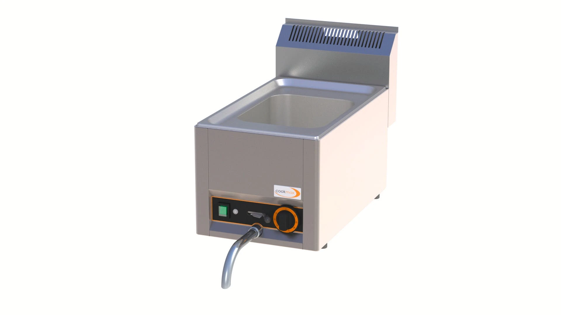 > Edelstahlkorpus > Becken tiefgezogen, 200 mm Tiefe > mit Ablaufhahn 3/4″ > Temperaturbereich: 30°C bis 100°C > Sicherheitsthermostat bei 130°C > Füllung: min. 6,5 l, max. 8 l Wasser > Lieferung ohne Körbe