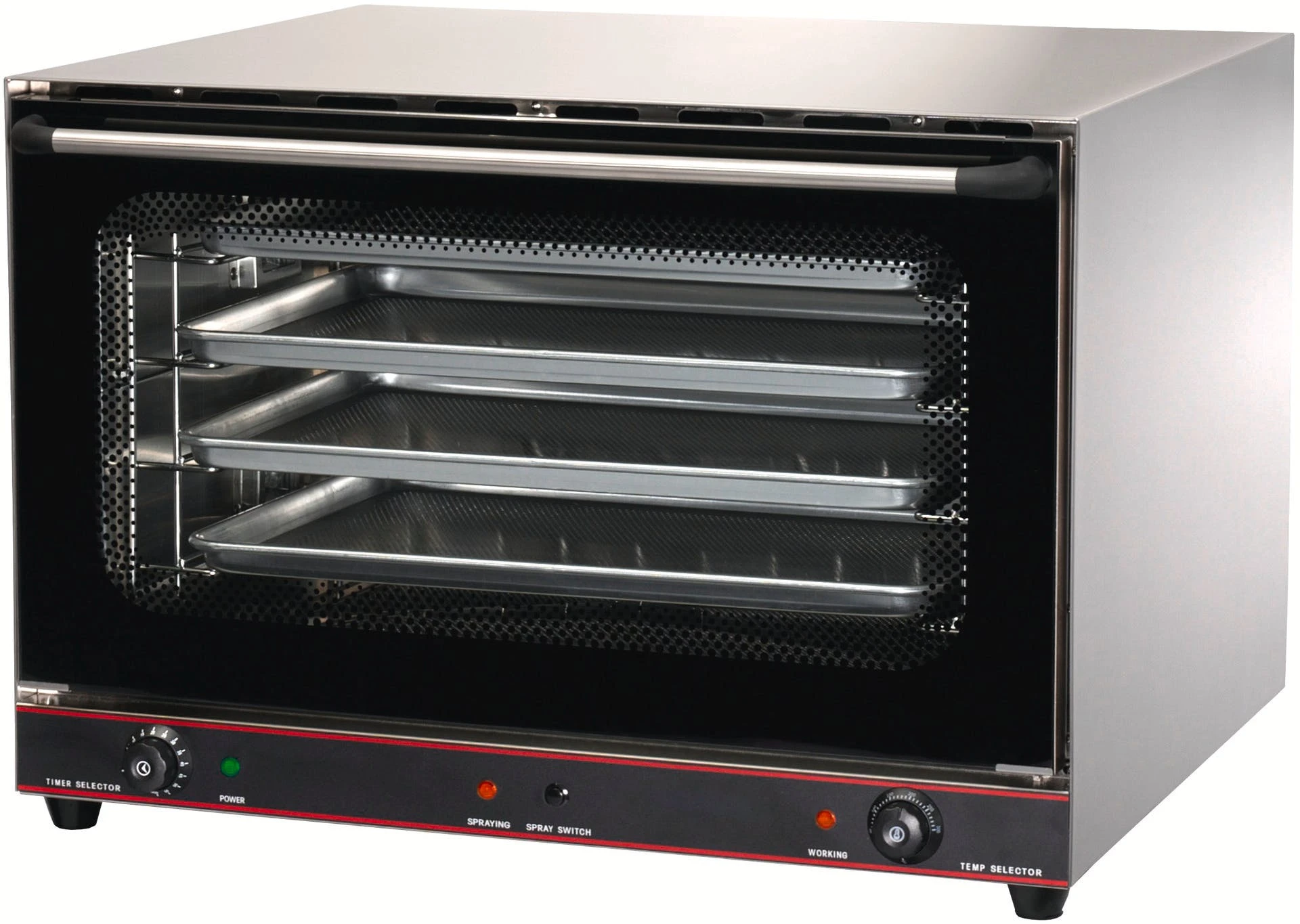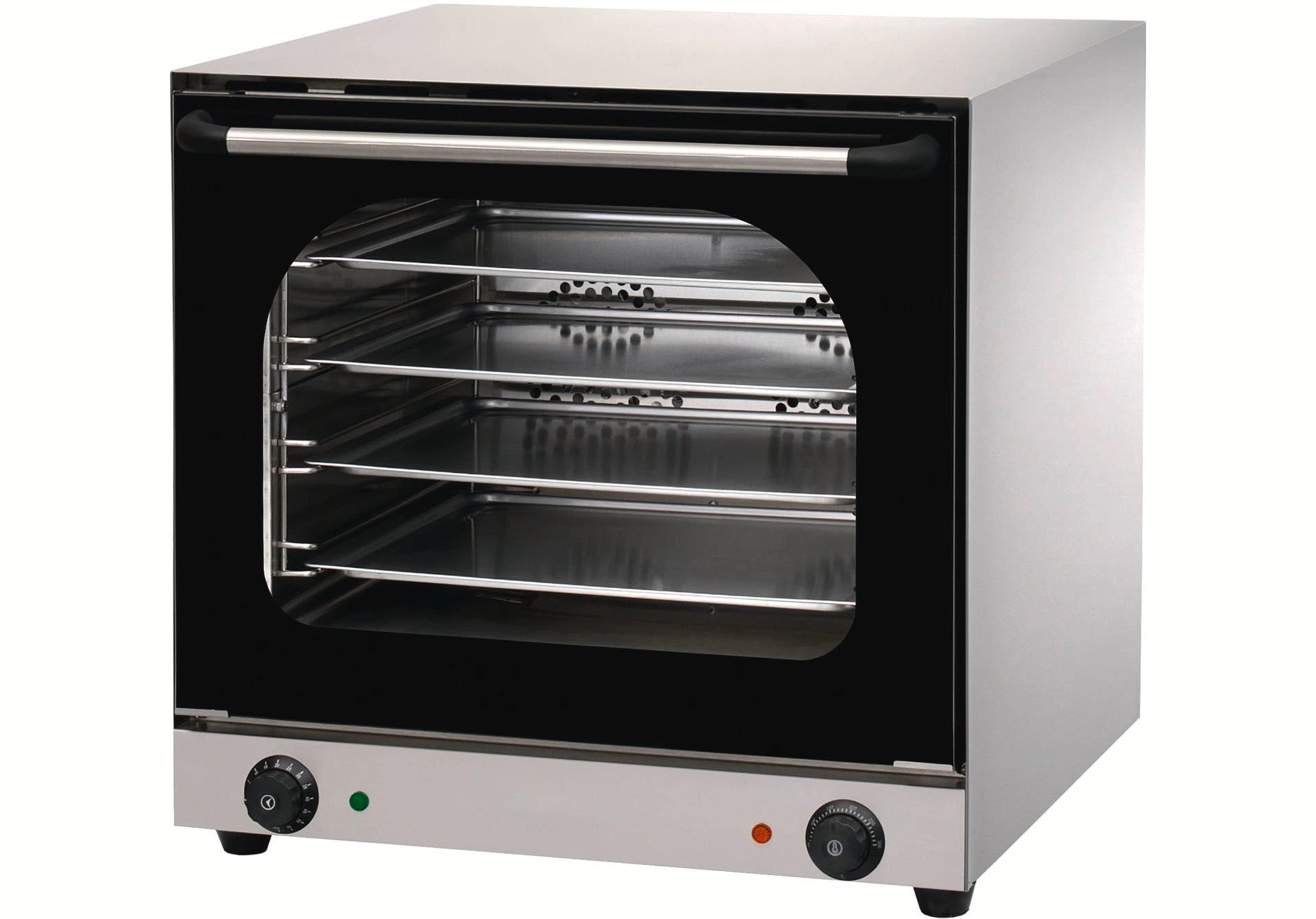 > Außenmaterial Edelstahl > Tür aus hitzebeständigem Glas > Temperaturbereich 50°C bis 300°C > mechanisches Thermostat > mit manuellem Timer > mit Innenbeleuchtung > Abstand Einschübe: 60 mm > inkl. 3 Bleche GN 1/1