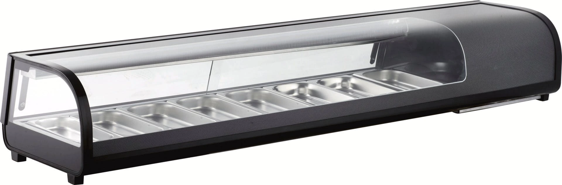 > Temperaturbereich: 0°C bis +12°C > statische Kühlung > elektronische Steuerung mit Digitaldisplay > schwarz > außen ABS und Glas > gebogenes Frontglas > LED-Innenbeleuchtung > max. Außentemperatur: +33°C > automatische Tauwasserverdunstung > Kühlmittel: R600a