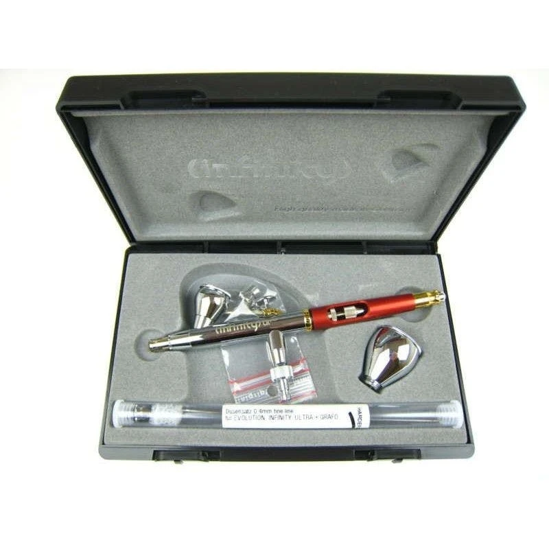 Airbrushpistole Infinity CR Plus Two in One – Intelligent und elegant Das High-End-Airbrushgerät für professionelle Fine Art Anwendung. Der neue Farbspritzapparat setzt nicht nur im Design neue Maßstäbe, sondern bietet vor allem intelligente Funktionsmöglichkeiten und hohen Komfort!